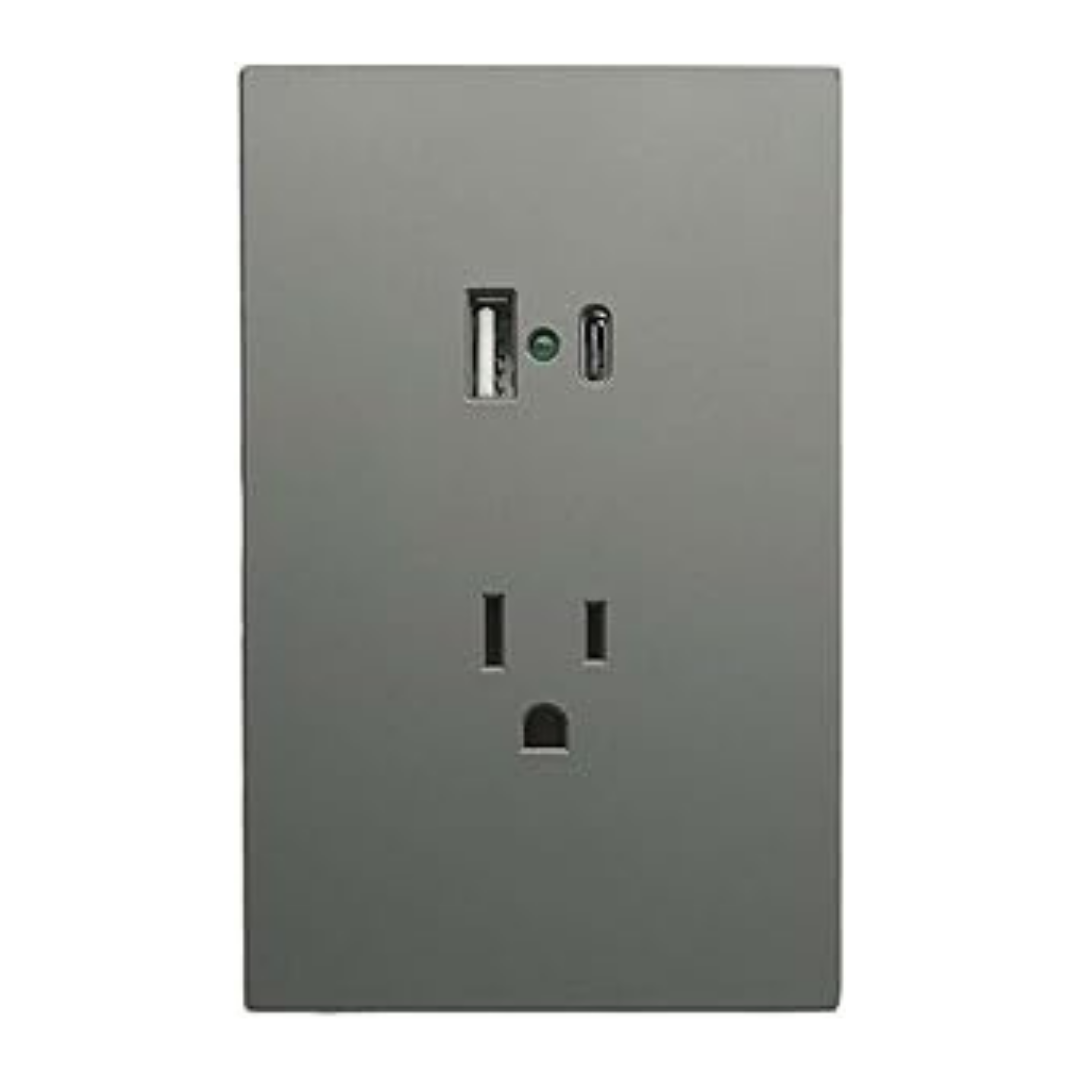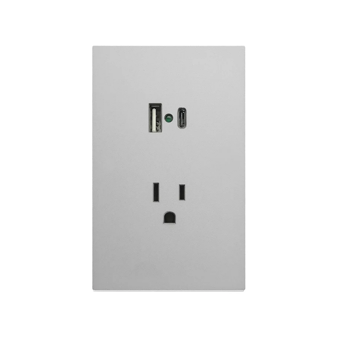 Placa Luxury APL-707 de ARTLITE Contacto Sencillo + USB Tipo A y C 15A 90–277VCA Blanco Skin Feel - LUXURY ARTLITE