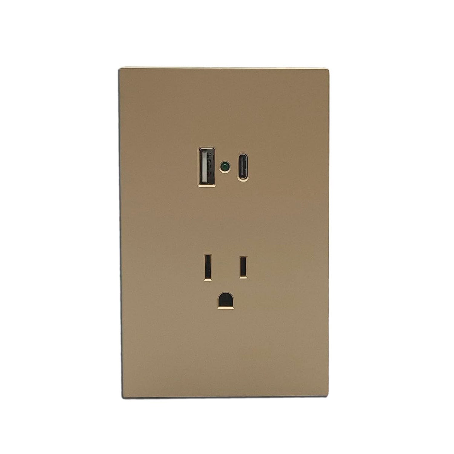 Placa Luxury APL-507 dorado skin feel - contacto 15A y cargador USB tipo A y C, 5V, 2.1A para interior - ARLITE