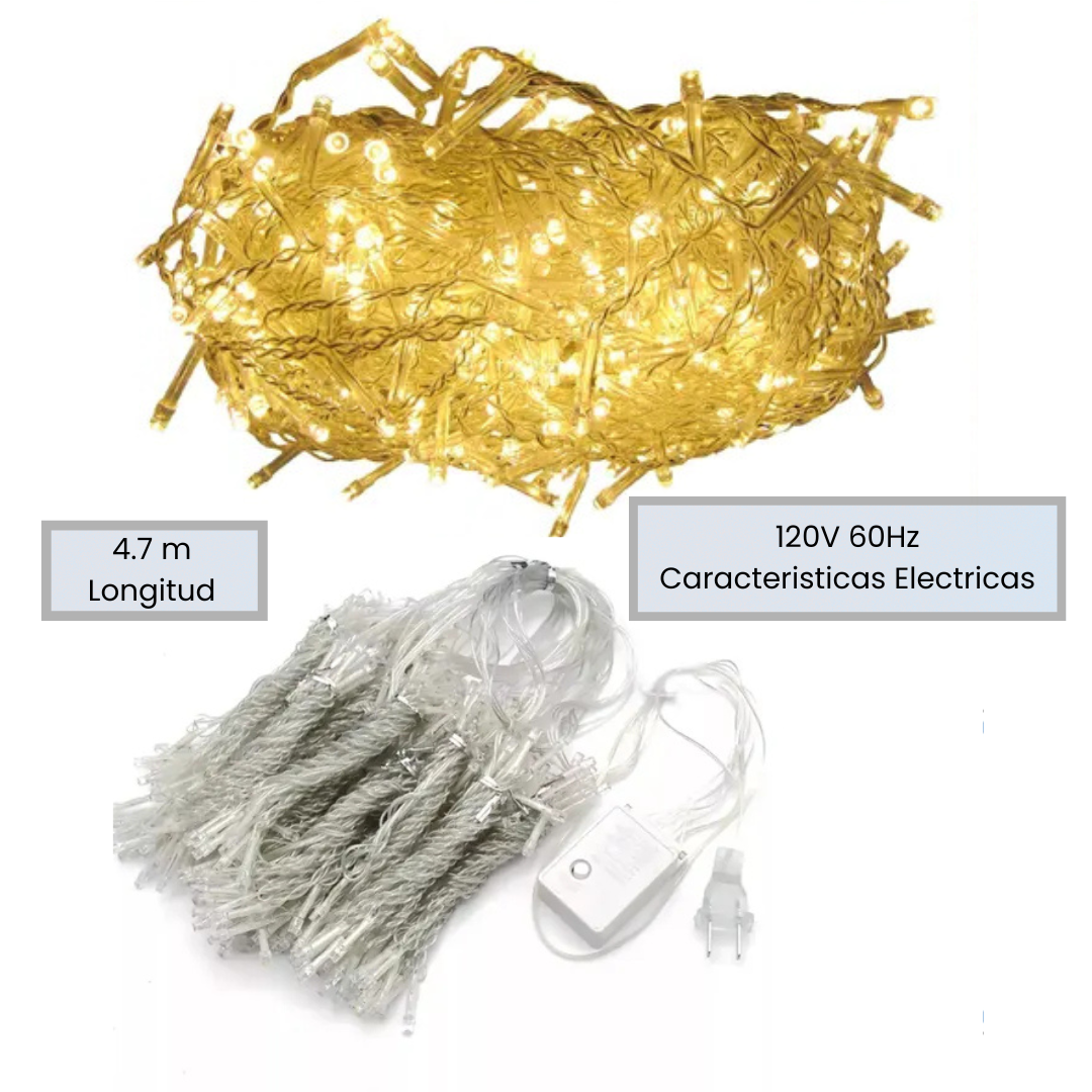 Serie Navideña LED Blanca Tipo Cascada PHILCO – 4.7 m / 8 Efectos