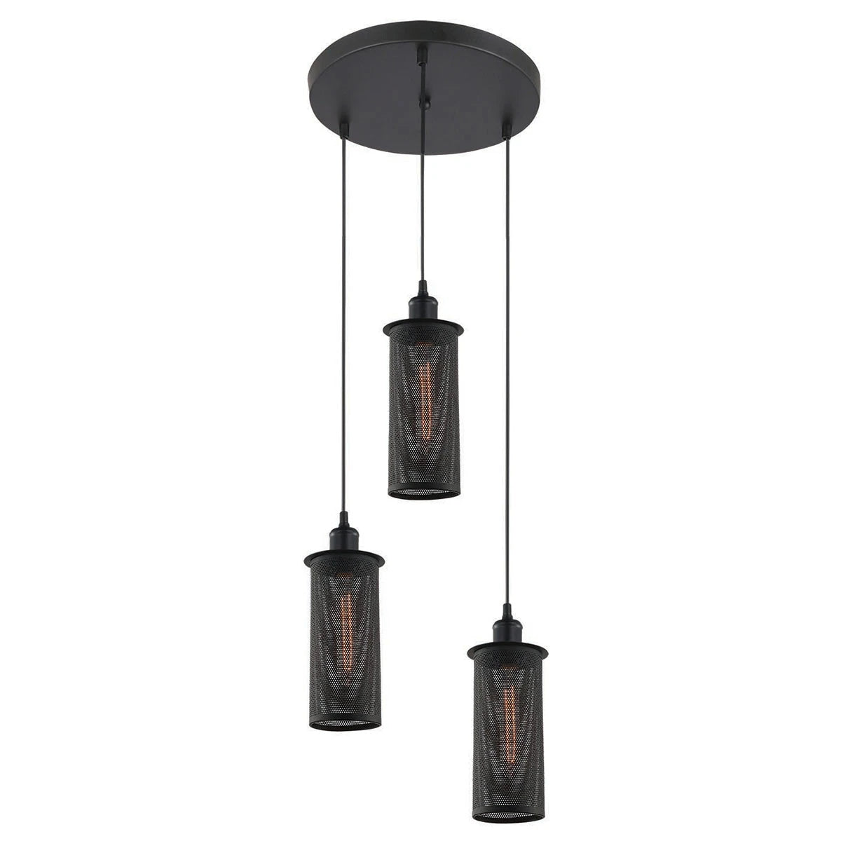 Lámpara Colgante ASGAR 3XE26 | 3 Cilindros Vintage en Color Negro – 2G ILUMINACION