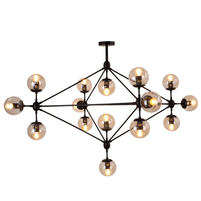 Lámpara de Techo Estilo Átomo con 15 Luces Base E27 Decorativo Vintage Industrial con Esferas de Cristal Ámbar – NGR