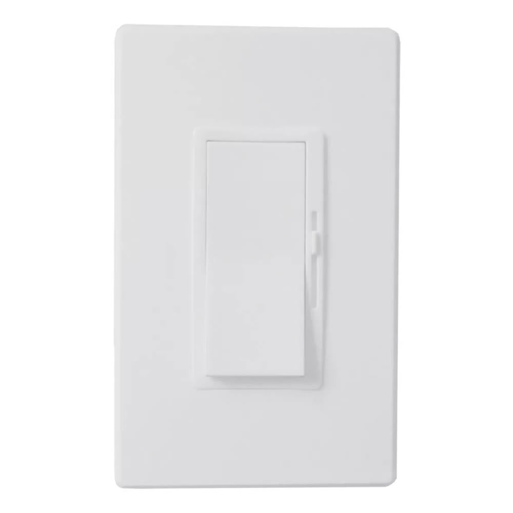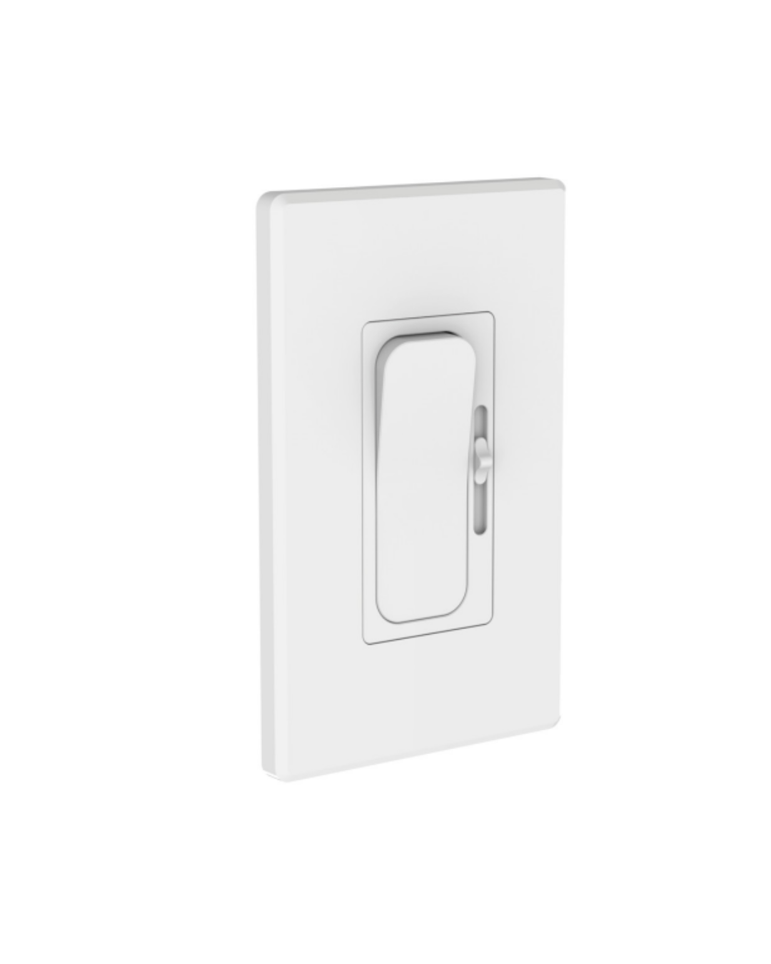 Atenuador de pared con placa incluida. Compatible con tecnología LED o incandescente. Control WiFi de 2.4GHz para control remoto a través de la app Estévez Smart, disponible en App Store y Play Store.