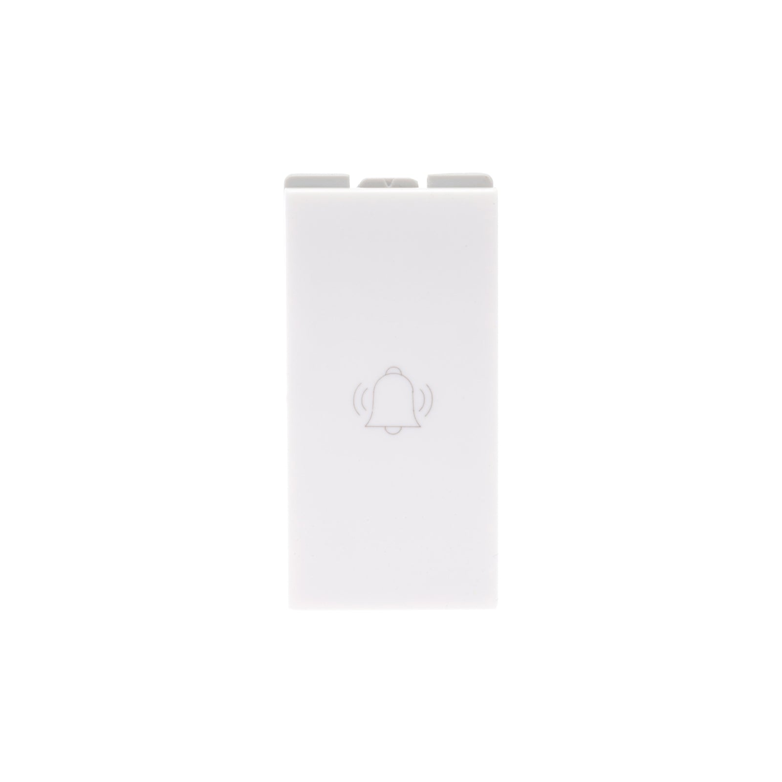 Pulsador campana Niessen Estévez, apto para complementar la instalación del timbre de su hogar u oficina. Funciona conectado a una tensión de 127-250 voltios. Fabricado en plástico color negro de alto rendimiento y resistencia a la decoloración, además tiene pestañas de sujeción que ayudan a colocarlo de manera precisa en las placas decorativas de pared. En su superficie cuenta con el símbolo de campana impreso para su identificación. Sus dimensiones son 4.5 x 2.2 x 3 cm, es de extracción sencilla, por lo que puede ser desmontado para mantenimiento o reparación sin dificultad. Es compatible con placas y accesorios de la línea Origen Estévez.