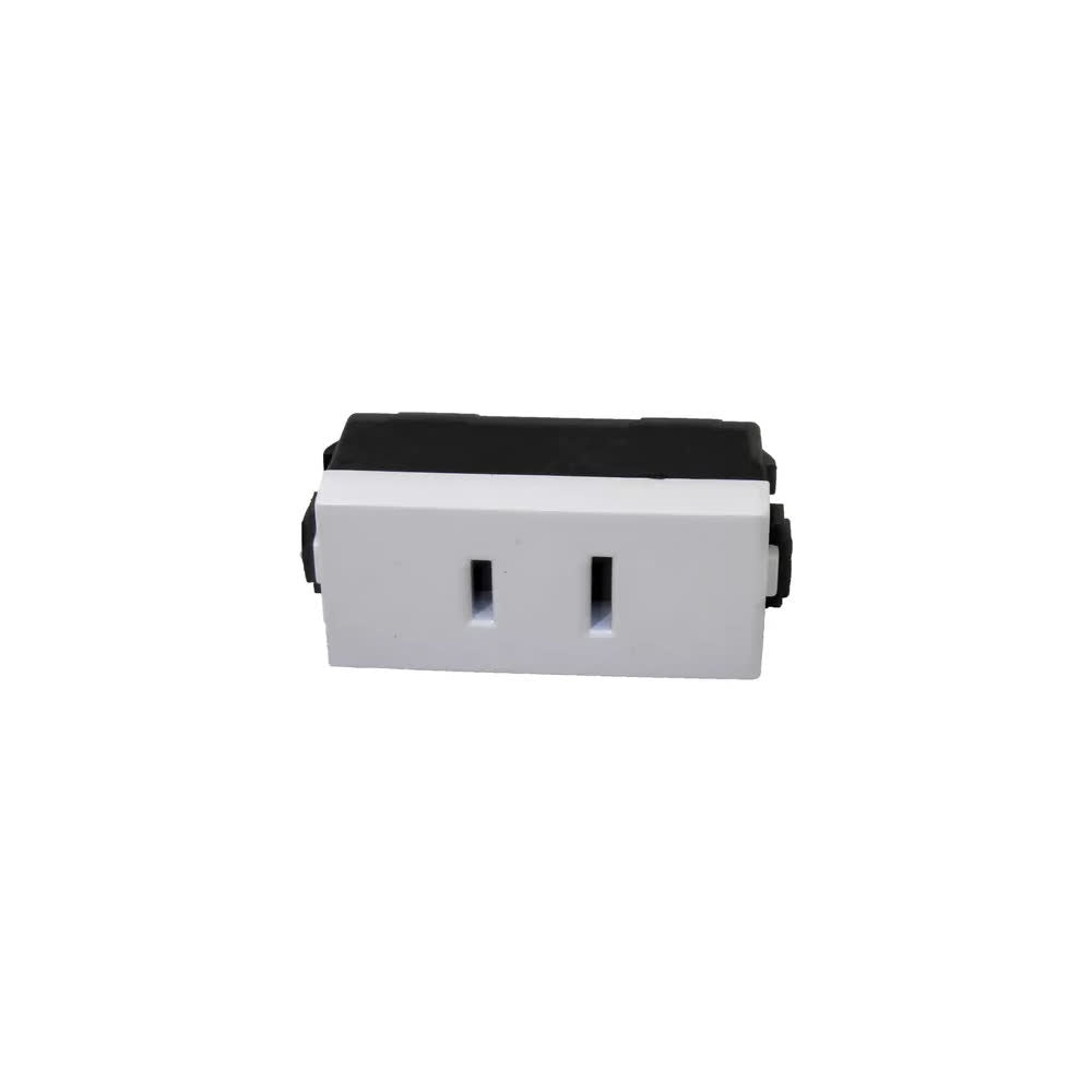 Contacto sencillo Origen de la línea Niessen Estévez es útil dentro de las habitaciones de tu hogar y con él, poder conectar 1 aparato eléctrico a la energía eléctrica. Su tamaño de 1 módulo lo hace compatible con placas de 1, 2 o 3 ventanas. Su cuerpo tiene forma rectangular y en su parte frontal cuenta con entrada de 2 polos con tierra para poder conectar la clavija de las herramientas. En su parte posterior, tiene entradas para colocar el cableado. Además, cuenta con pestañas en sus costados para poder colocarlo con sencillez, en las cajas de registro. Funciona conectado a tensiones de 127 volts con 15 amperes. Está elaborado con plástico blanco resistente y sus medidas son 2.3 x 4.5 x 3.5 cm.