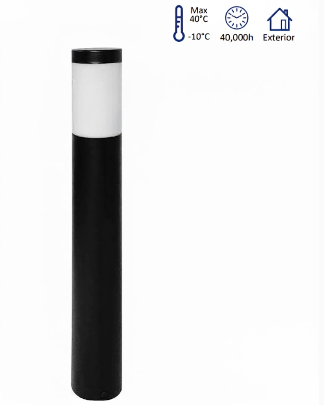 Cuenta con una base estándar E26/E27, compatible con focos de hasta 40W (foco no incluido), lo que te permite personalizar el tipo de iluminación según tus necesidades. Funciona con un voltaje de 90-260V~ a 50/60Hz y ofrece una vida útil de hasta 40,000 horas. Su diseño compacto y moderno (76 mm de diámetro x 520 mm de altura) facilita la instalación y aporta un toque decorativo a cualquier ambiente exterior.